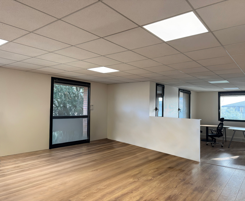 • Bureau de 54 m² composé d’une pièce de stockage de 12,59 m² et d’un open space de 41,41 m².