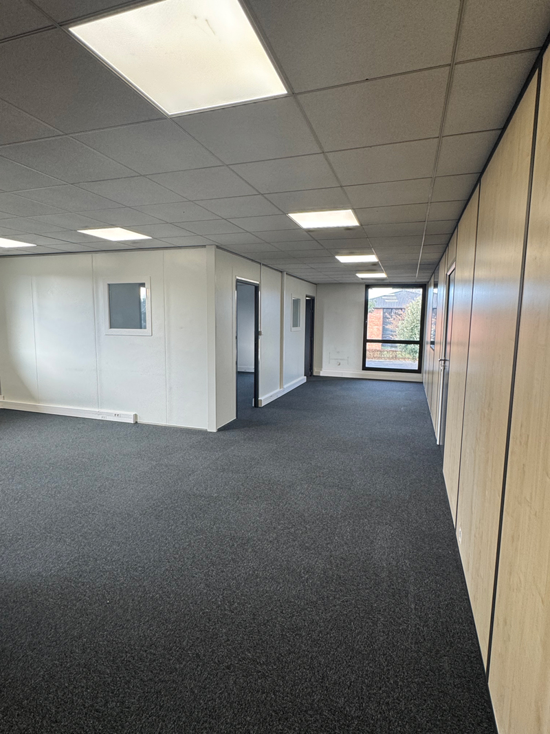 • Bureau de 99,42 m² comprenant trois espaces distincts : une ancienne salle de formation de 26,30 m², un grand bureau fermé de 22,09 m², et le reste en open space.